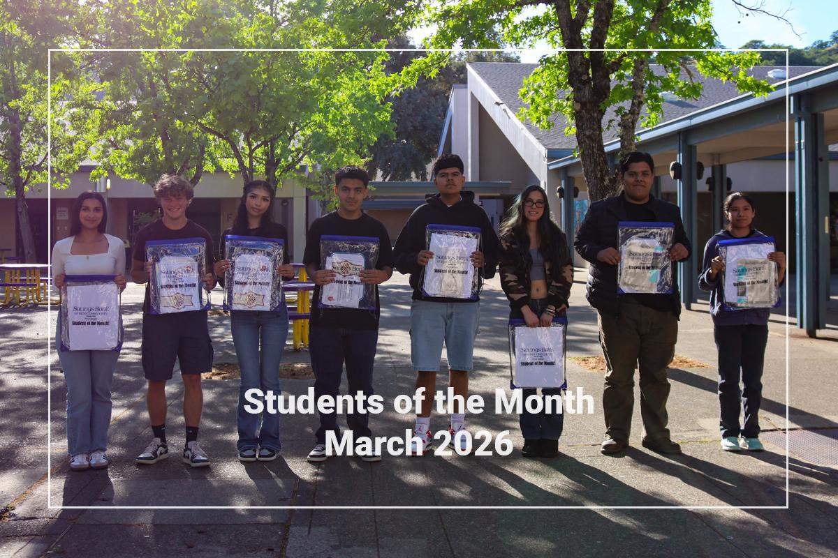 March Students of the Month! Recognizing our Ukiah High Students of the Month: Diana Garcia Trejo, Salvio Senerchia, Anna Crabtree, Benjamin Fausto, Alvin Corona Cerda, Thalia Kita, Cage Campbell, and Esperanza Montano Culbertson. Well done! Print